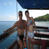 The people in the "A lot of happy people" picture are Jim Davis from Port Orchard Wa. Who restored my Superbird. He and his Thai wife were in Thailand for a month so we decided to meet in Phuket for a week for some diving. The second day there we went snorkeling and saw a great deal including a big octopus, a sea turtle which I grabbed and hitchhiked on for about 30 seconds (luckily no greenpeace boats were around) lots of moray eels, one of which I grabbed from behind; he didn¡¯t like it much, and a bunch of other stuff. The Andaman sea has a great deal of life but unfortunately there is no spear fishing allowed. Keeping up with Jim who can go to 40ft for 2 minutes hurt my ears a bit so the next day on the three boat dives they hurt more. I saw a black tipped reef shark about my size and a leopard shark which were my first underwater encounters with sharks; luckily since a great deal of my previous diving had been in the Monterey Bay area (great white territory) with a stringer of bloody fish hanging off my belt. I tried to get close to them but the reef shark took off like a shot and the leopard swam into another diver, then turned back towards me, then he took off for good too. I also saw a big grouper. The following day the doc said I should not dive but could surface snorkel so me and Amity (the girl next to me in the group shot) snorkeled together since her ears were hurting too, while Jim dove with Blanche (the girl sitting next to him). We met the two girls on the dive boat; they are from Hong Kong; the one next to Jim is a police officer and the other is an English teacher. It turned out quite well because watching the divers from the surface was really tedious. The guides, while nice enough guys, really moved slow and looked at each little fish while Jim and I are used to moving fast, killing fish and moving on. Even traveling at Amity¡¯s speed we were moving much faster than the divers and covered twice the ground they did and saw twice as much. I saw a tuna while snorkeling but it was so far away and fast I never had a chance to get close. I also saw an empty giant clam shell about 30cm across in about 30ft of water but couldn¡¯t dive down to get it – doctor¡¯s orders. This trip to Thailand was the best so far and I have overcome my aversion to the country and people. I even learned some Thai and hope to study enough before my next trip so I can get by to some extent without English. They don¡¯t speak English very well there. Everything was cheap there and the people (if you meet the right ones) were nice. |