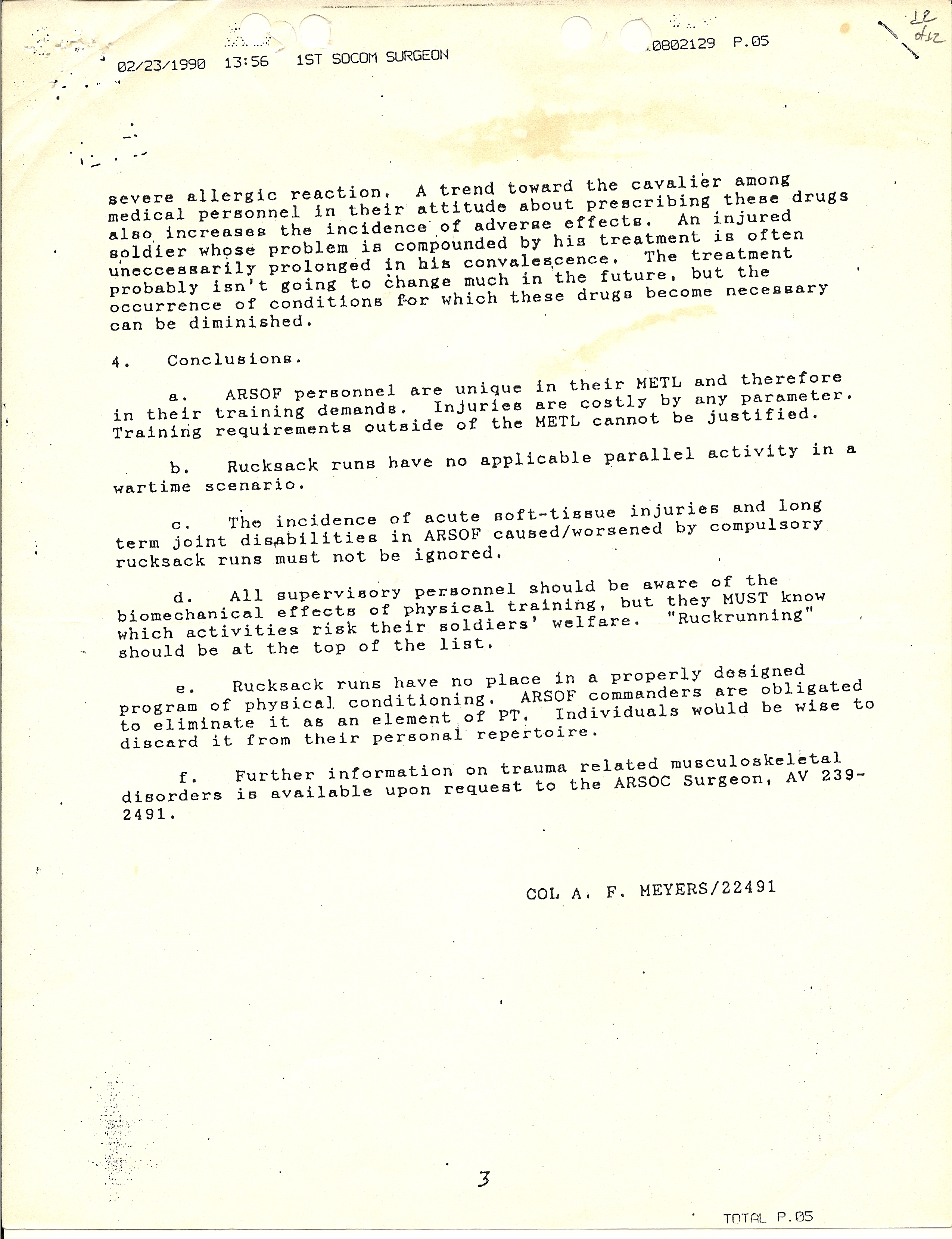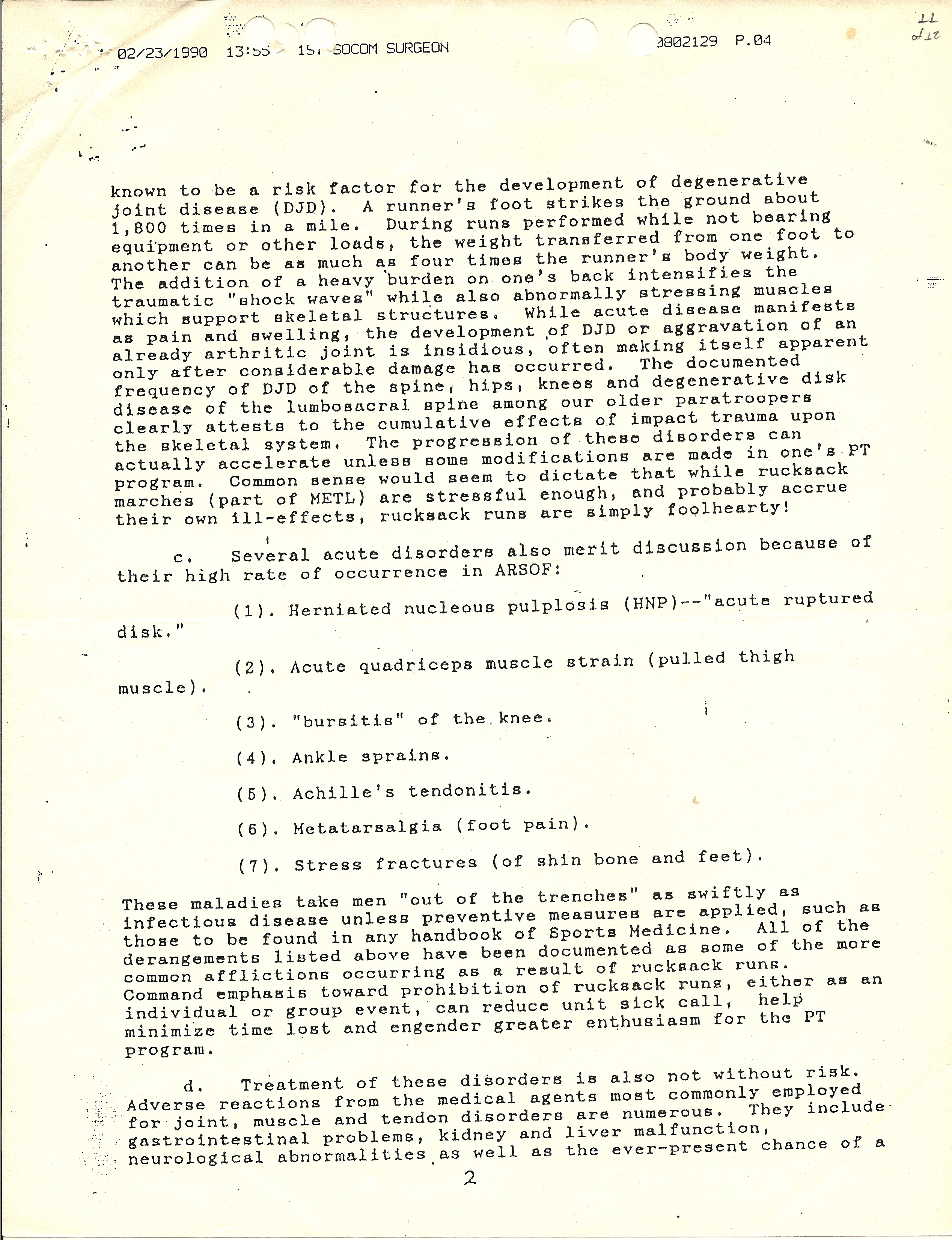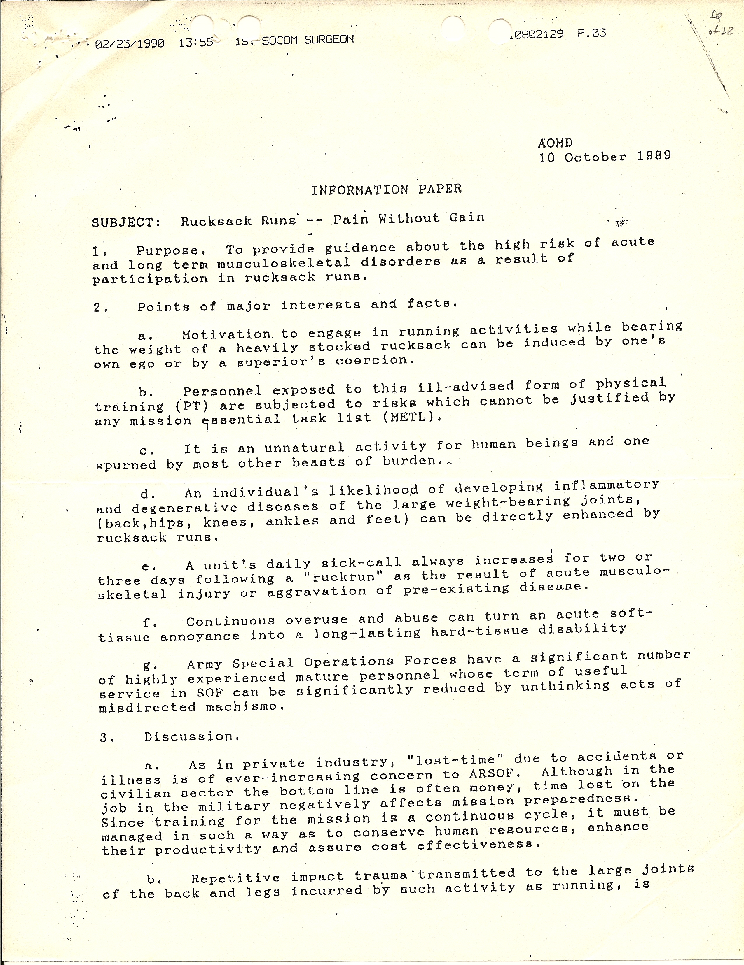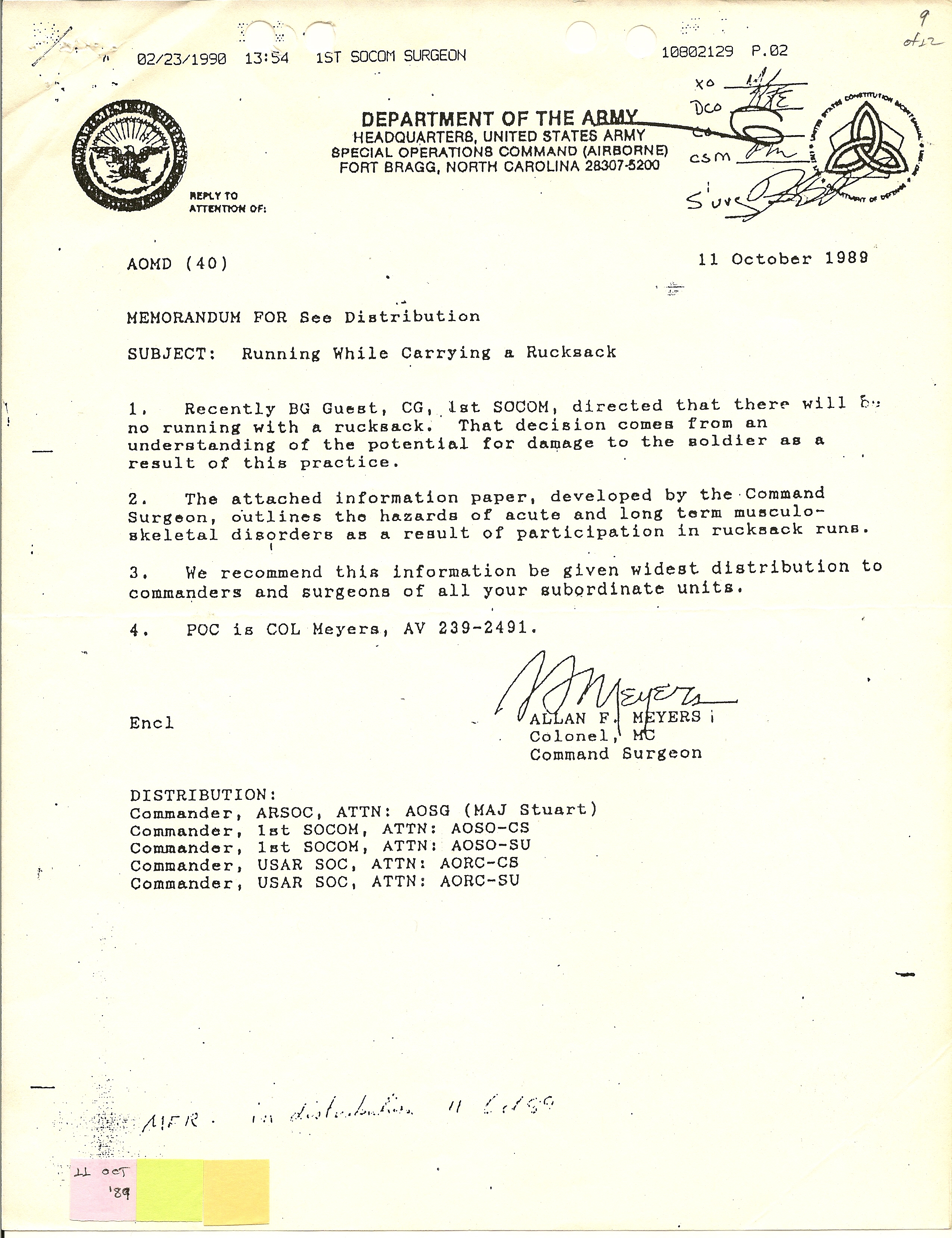 SOCOM policy letter forbidding running with a rucksack due to the understanding of the potential for damage to the soldier as a result